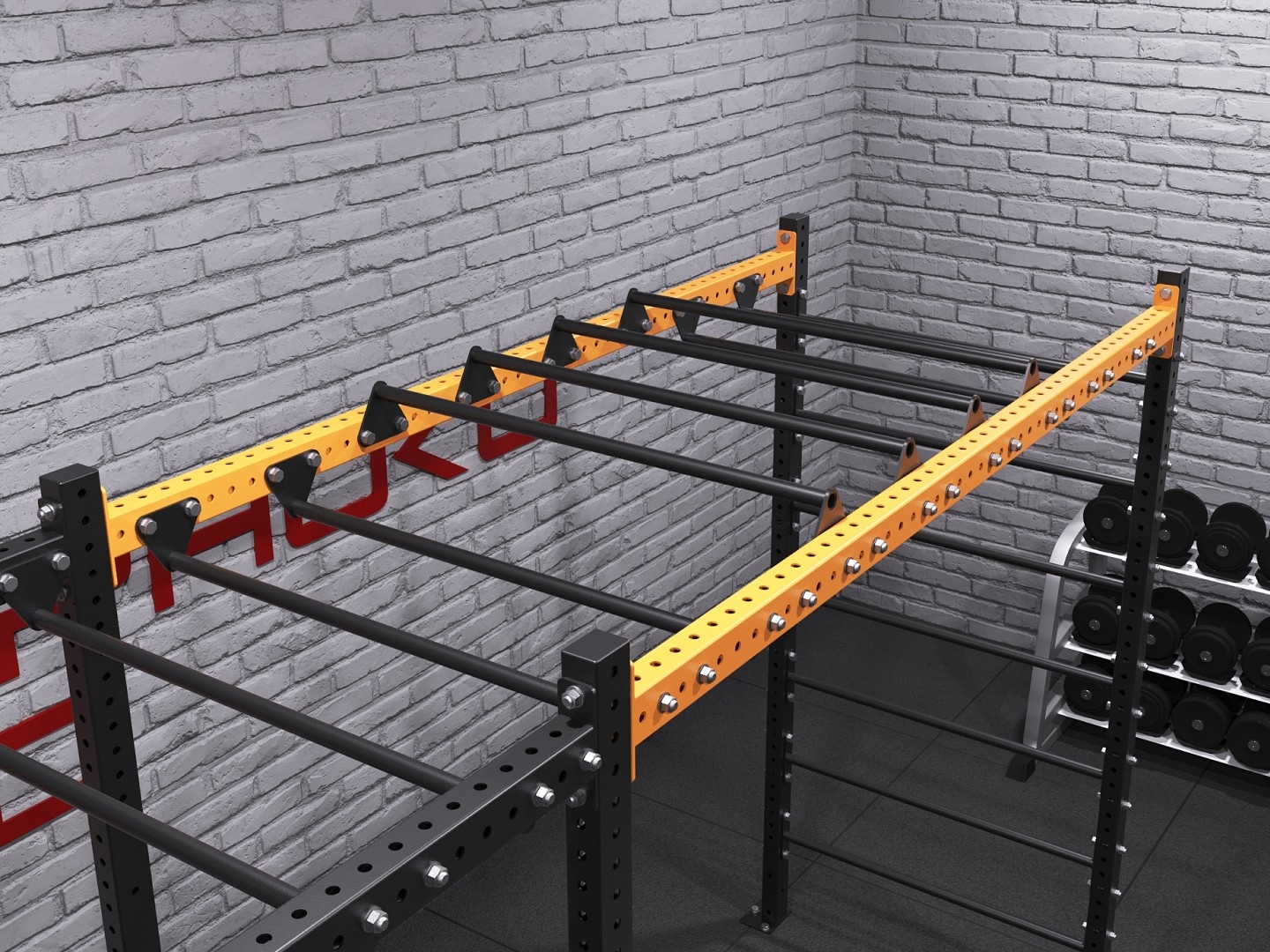 Балка используется в качестве соединительного элемента каркаса функциональной рамы. Конструкция рассчитана на высокие тренировочные нагрузки и подходит для интенсивной эксплуатации. Также балка служит точкой крепления для дополнительного оборудования — на нее можно подвешивать гимнастические кольца, канаты, тренировочные ремни, TRX-петли и другие аксессуары для функционального тренинга.