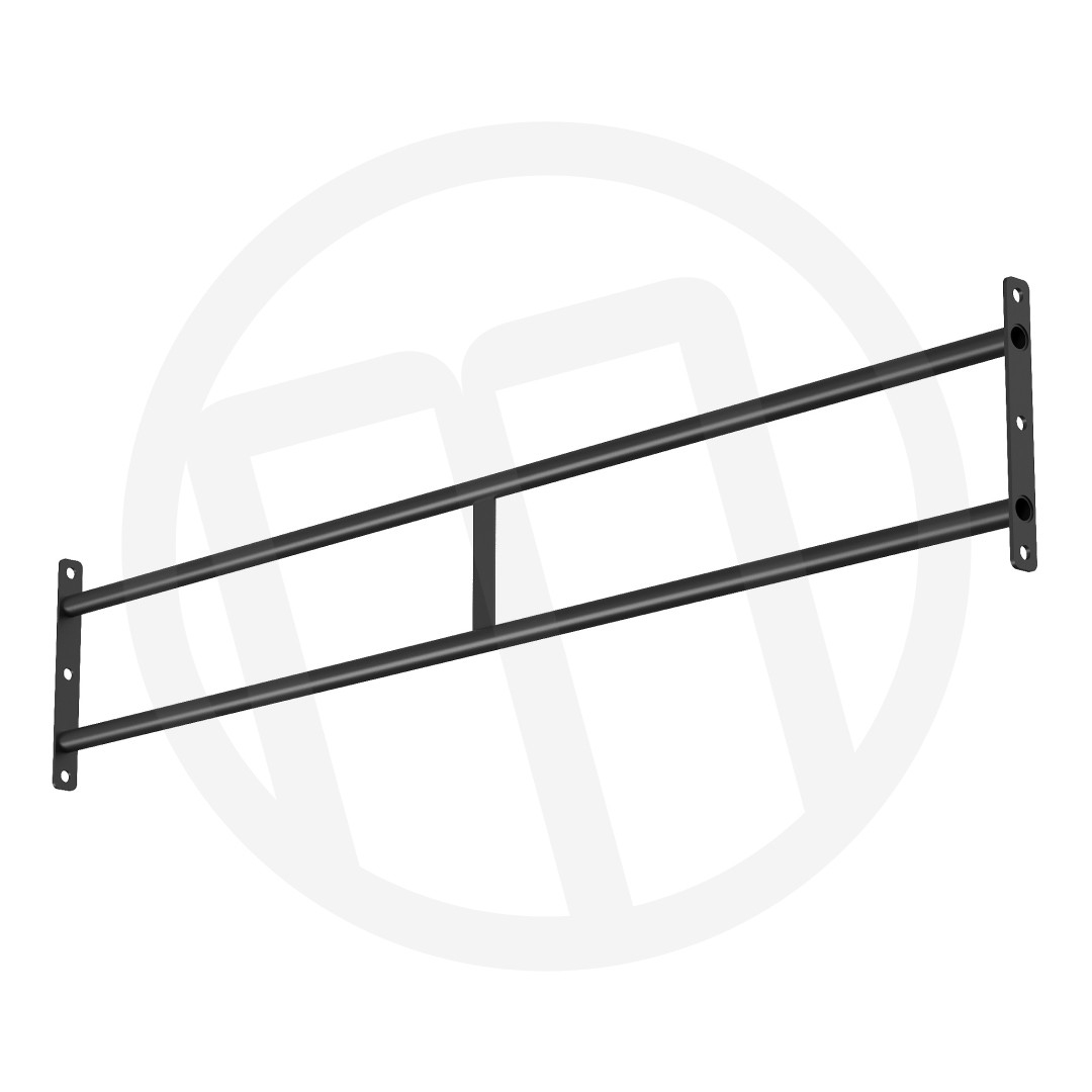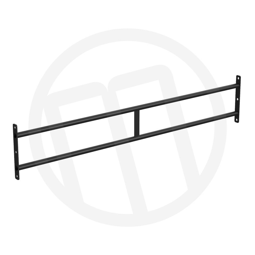 Перекладина двойная 1800 мм — универсальный элемент модульных функциональных рам серии ФО. Изготовлена из прочных стальных труб диаметром 32 мм с толщиной стенки 3 мм и оснащена надежно приваренными монтажными площадками из листовой стали толщиной 6 мм для прочного крепления к стойкам конструкции. Перекладины расположены на разной высоте, что позволяет разнообразить способы ее применения. Дополнительно оснащена усиливающей перемычкой.
