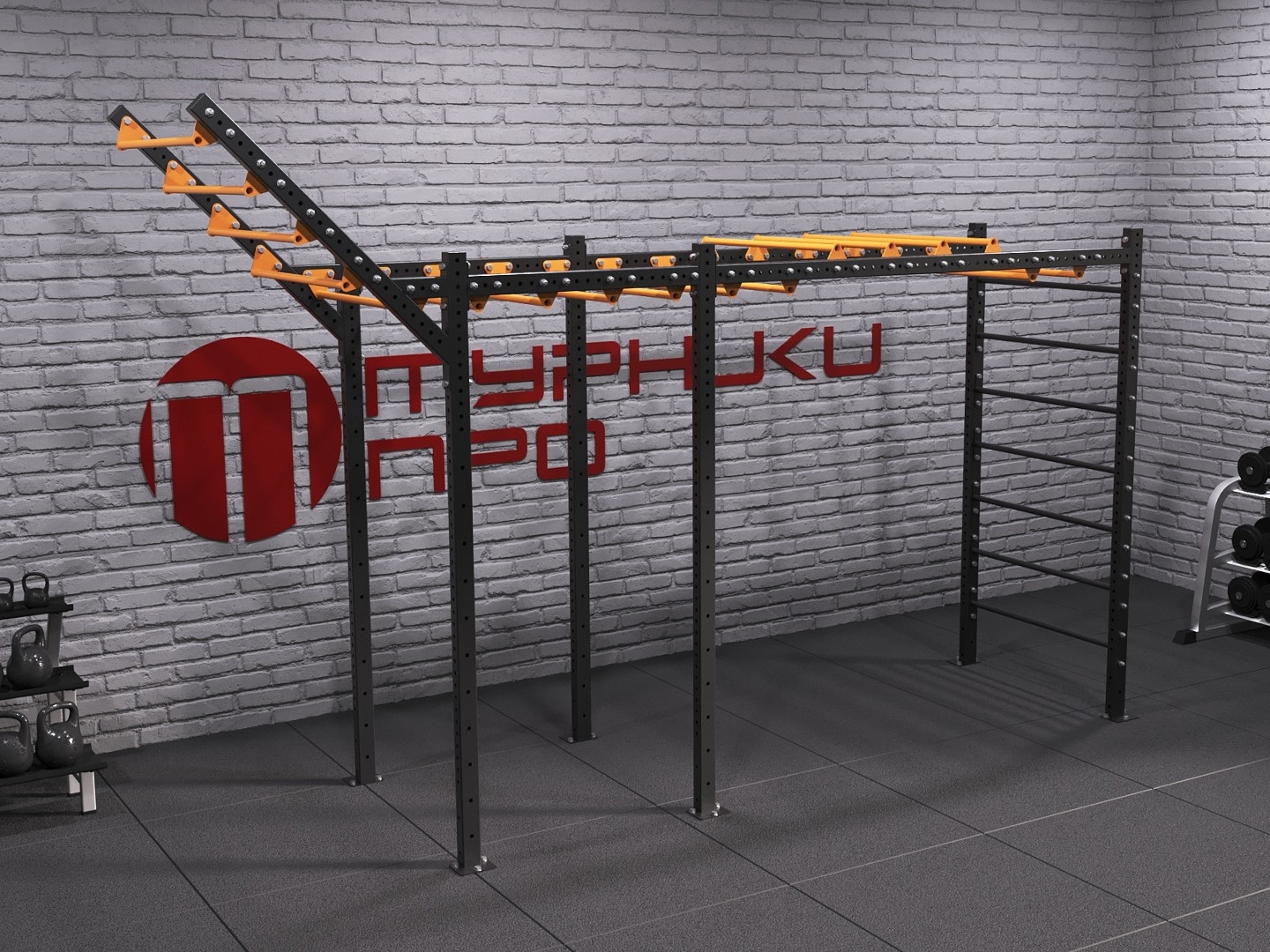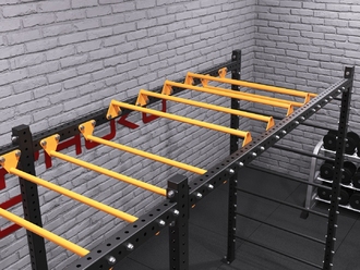 Перекладина используется как ступень рукохода. Может быть ориентирована при монтаже как вниз, так и вверх относительно уровня направляющих балок. Конструкция рассчитана на высокие тренировочные нагрузки и подходит для интенсивной эксплуатации. Также перекладина служит точкой крепления дополнительного оборудования — на нее можно подвешивать гимнастические кольца, канаты, тренировочные ремни, TRX-петли и другие аксессуары для функционального тренинга.