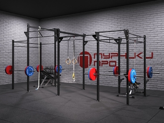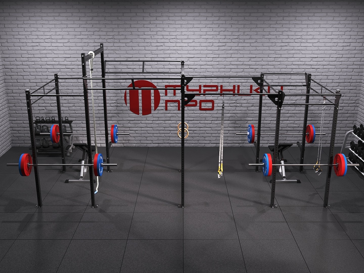 Многофункциональный комплекс ФО-461 на базе модульной системы разработан для размещения тренировочных залах средней площади. Конструкция позволяет организовать полноценную зону для силового и функционального тренинга, эффективно используя пространство. Комплекс подходит для спортивных залов площадью от 60 м². Несмотря на компактные размеры, рама обеспечивает широкий набор возможностей для выполнения упражнений с собственным весом и дополнительным оборудованием. На конструкции можно выполнять подтягивания, работать со штангами и размещать различные элементы функционального тренинга.