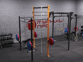 Вертикально установленные стойки соединяются между собой балками и перекладинами различных типов, формируя жесткую и устойчивую каркасную конструкцию. Прочность стойки позволяет выдерживать высокие тренировочные нагрузки и использовать оборудование для широкого спектра упражнений. Помимо формирования каркаса рамы, стойка служит универсальной точкой крепления для всего спектра навесного оборудования и аксессуаров серии.