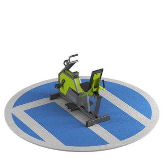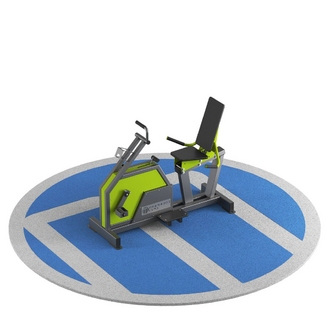 Уличный горизонтальный велотренажер СФ-193 с безынерционным нагрузочным механизмом для развития мышц ягодиц, голеней и бедер - имитирует езду на велосипеде и может использоваться для обязательной разминки перед силовой тренировкой.
